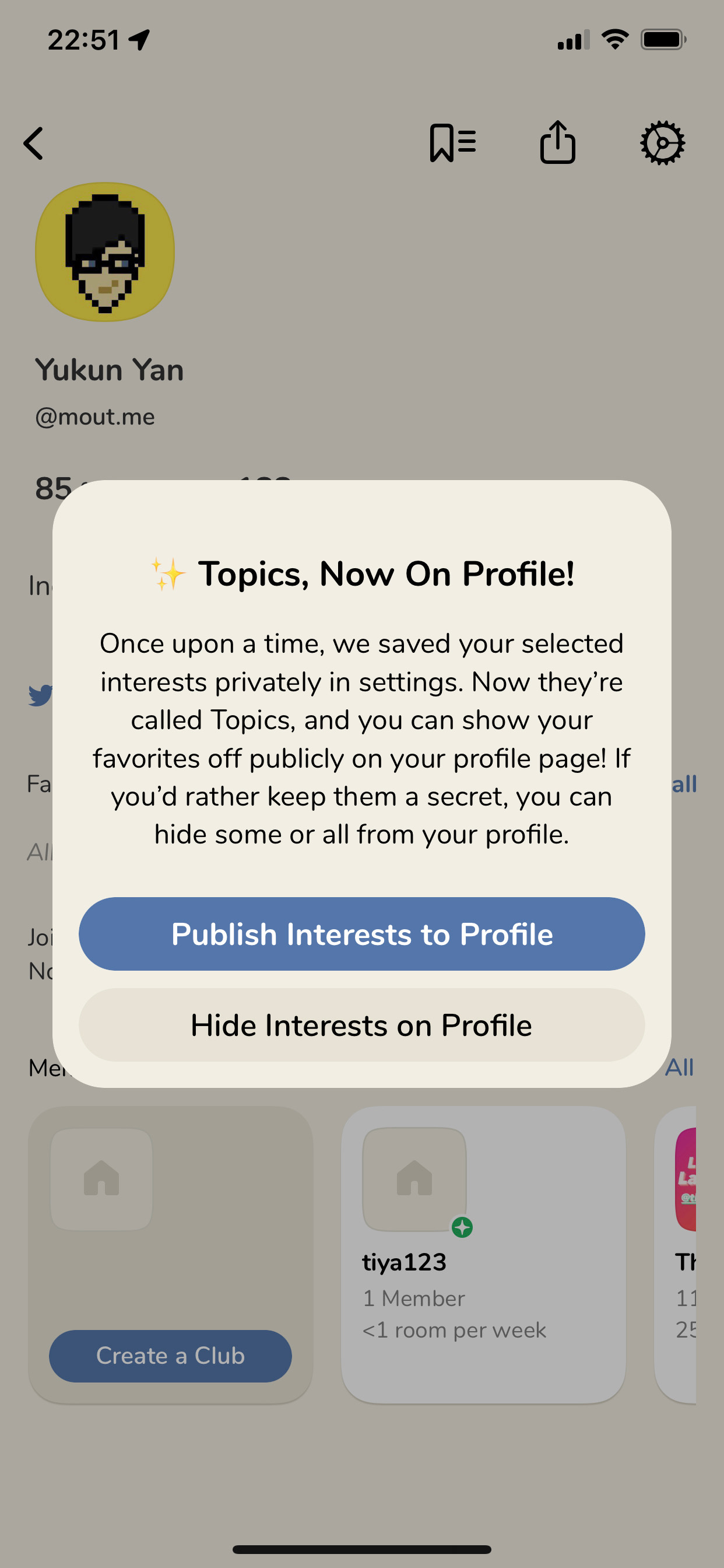 01. Clubhouse 上线“Topics”兴趣话题功能