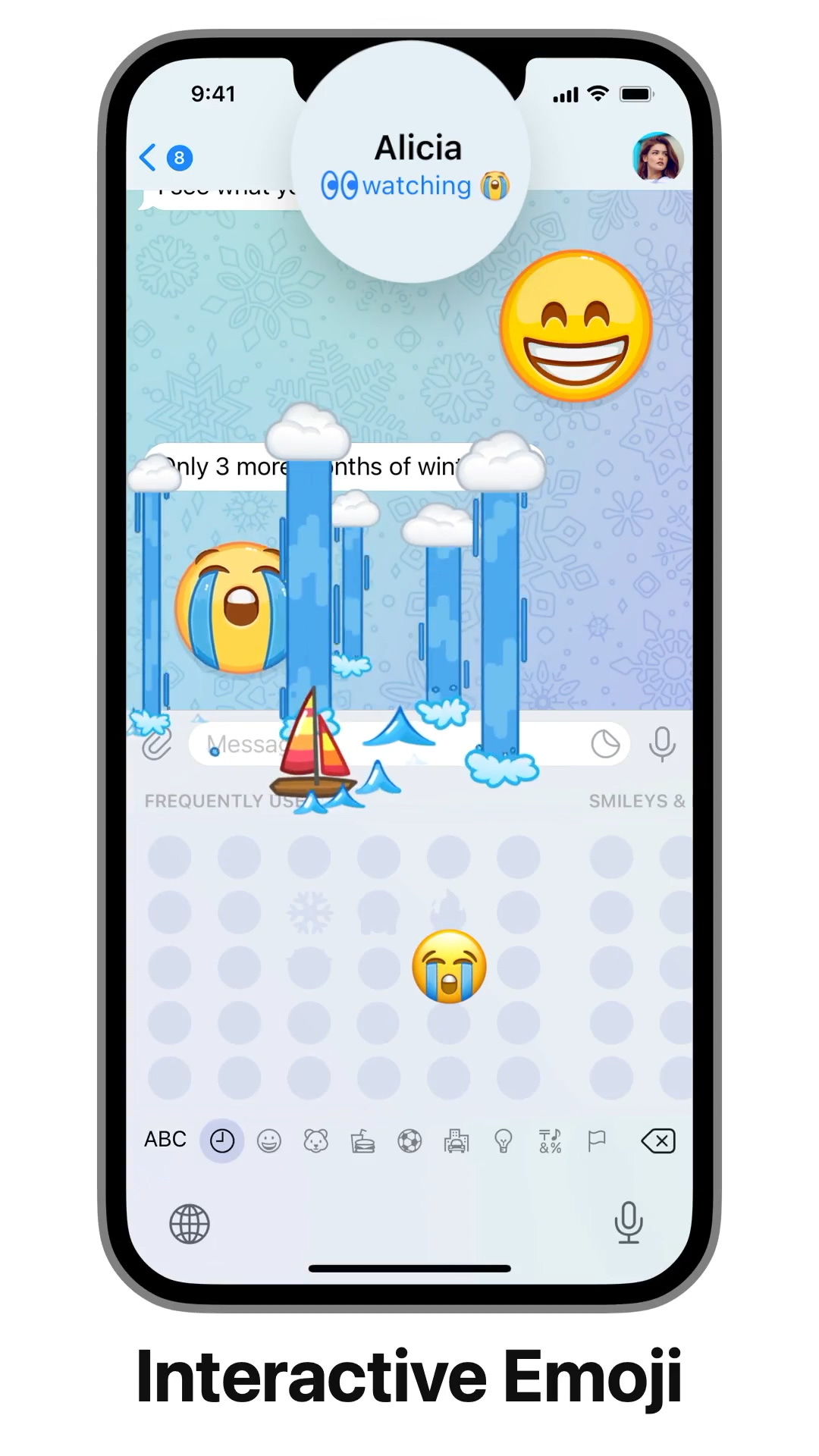 More Interactive Emoji:动画 emoji 新增: 🔥 😁🤩 😢😭 😱❄️。一对一聊天中发送可触发,点击已发送的 emoji 可触发全屏动画。