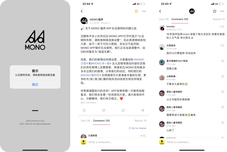 可能很多人没接触过这个产品。我也是之前被即刻停止服务,找替代产品时候找到的 MONO。当时它类似 Yahoo News Digest 的设计理念、精致的视觉和交互设计、高质量资讯的筛选让我非常惊喜。在一段时间内成为了我代替即刻获取咨询的渠道。在当时来说,它的文艺感和所谓的逼格帮它吸引了一批忠实的用户。